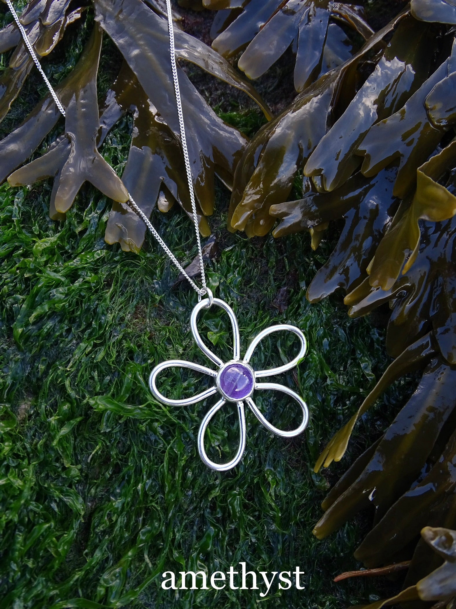 gemstone flowers. a collection of stones sitting in the middle of sterling silver wire petals.