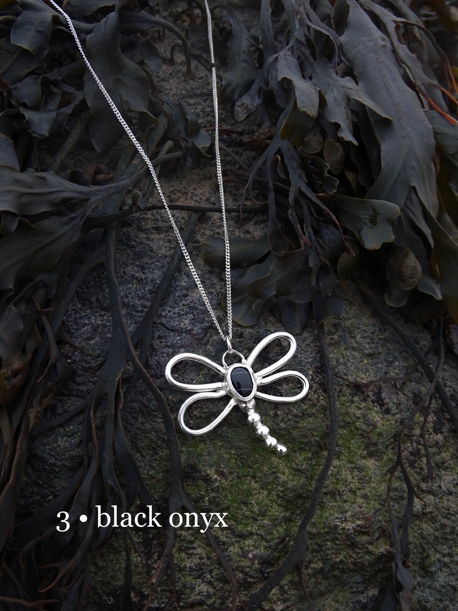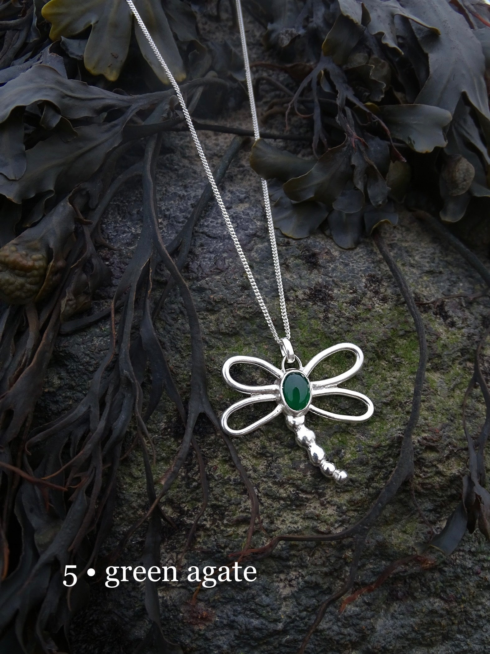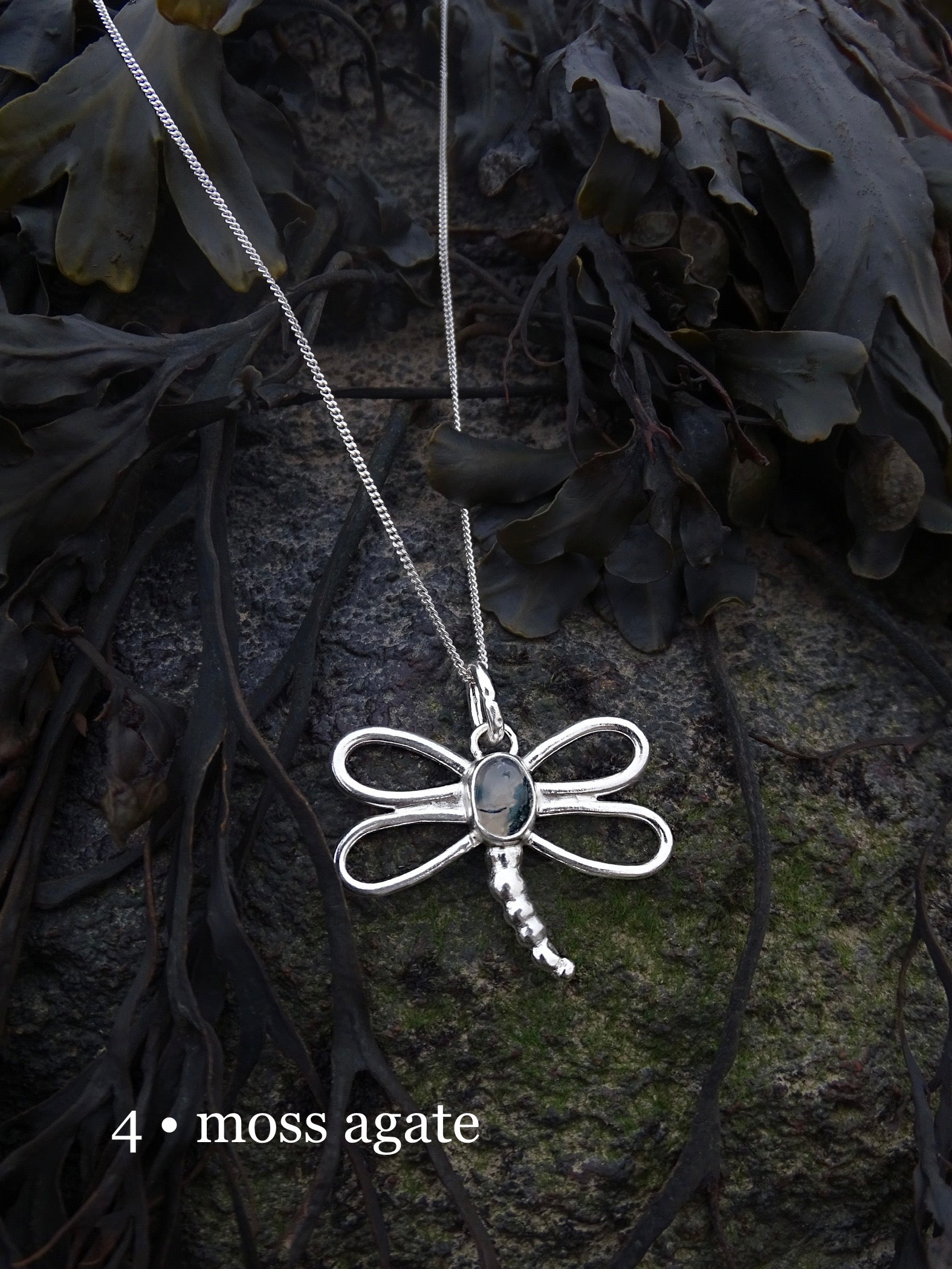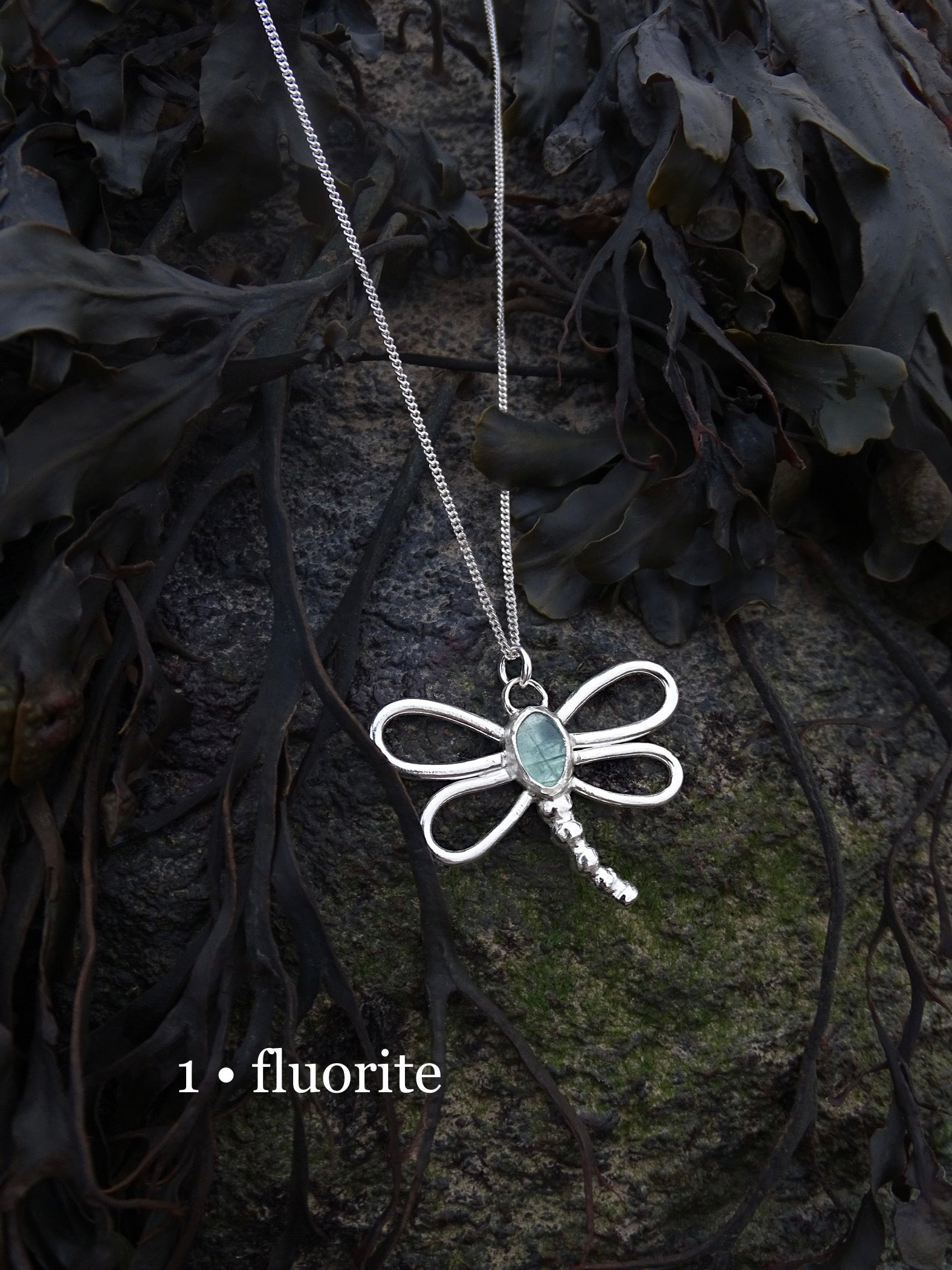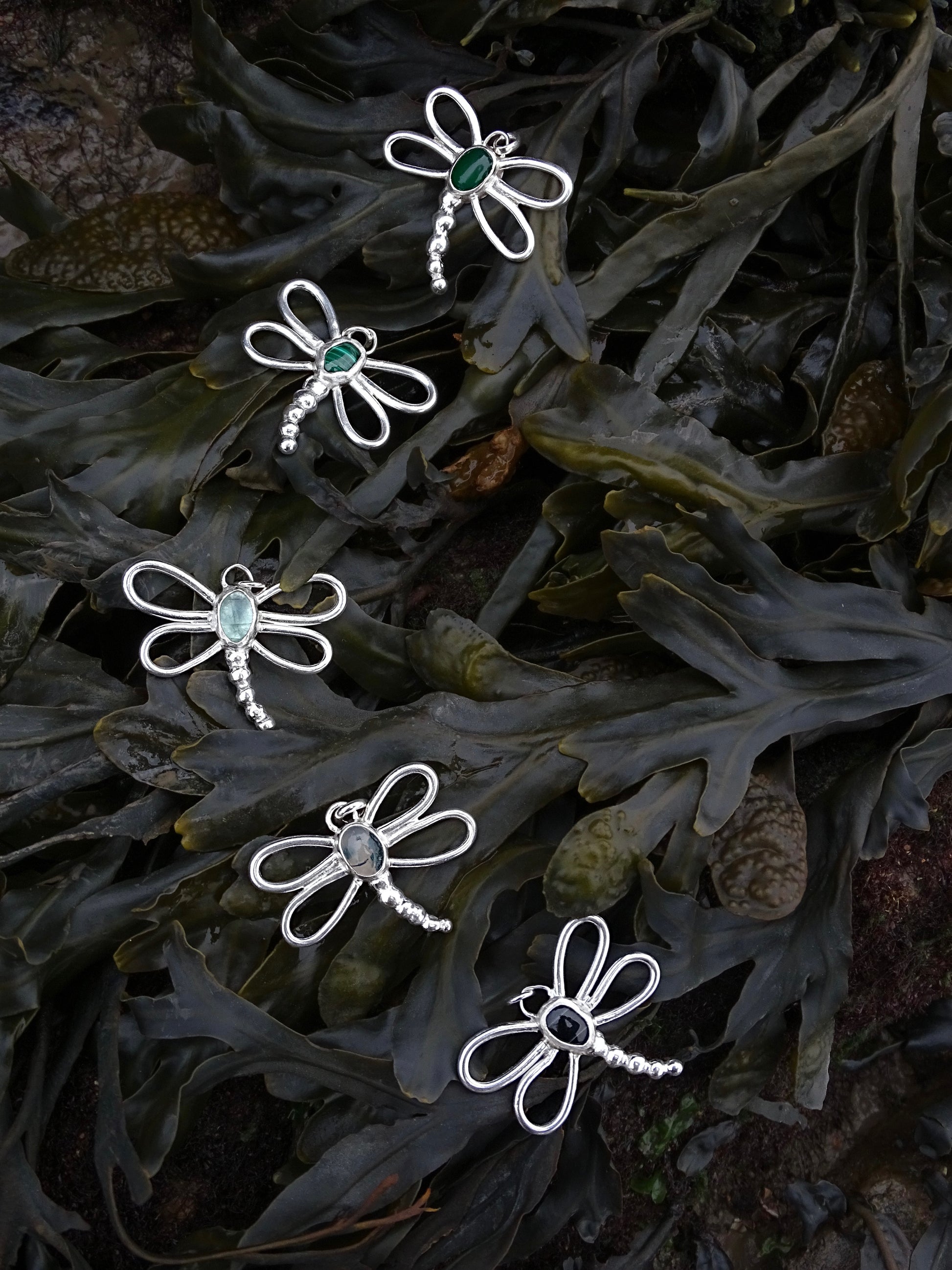 nausicaa pendants. dragonfly pendants inspired by the forest. sterling silver wings encompassing gemstones.