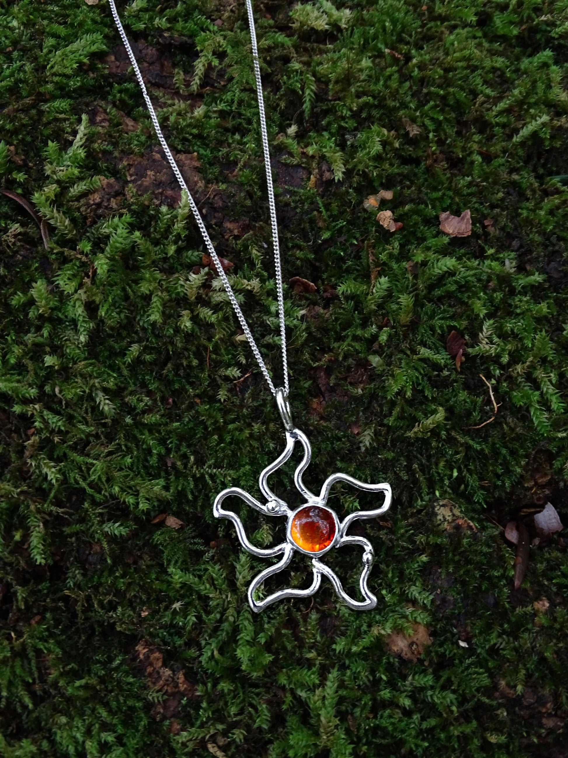 amber soleil pendant. new design! amber encased in sterling silver rays.