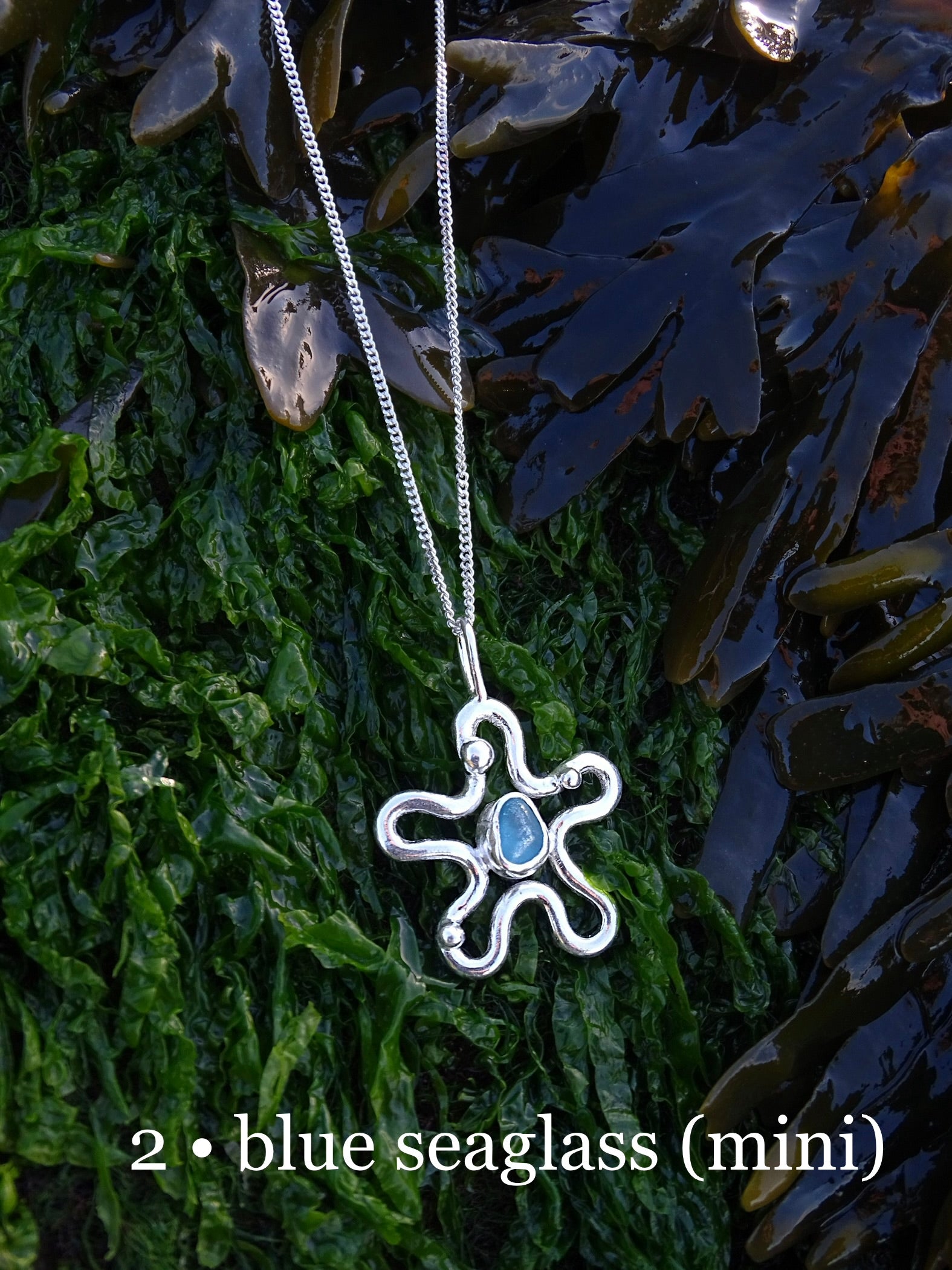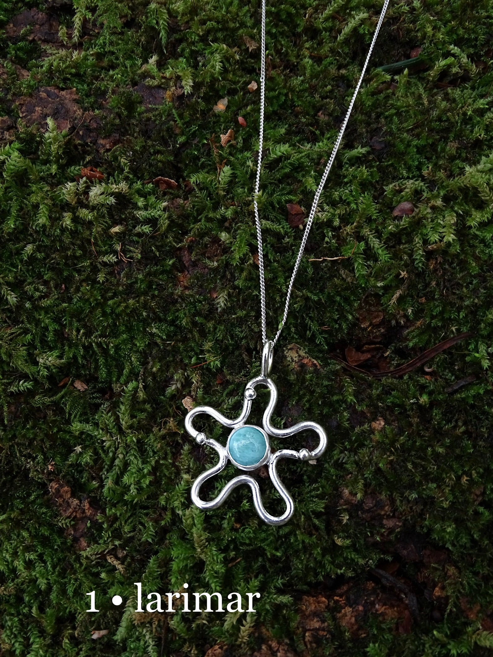 starfish pendant. gemstones and hand-picked seaglass, set in the middle of a silver star.