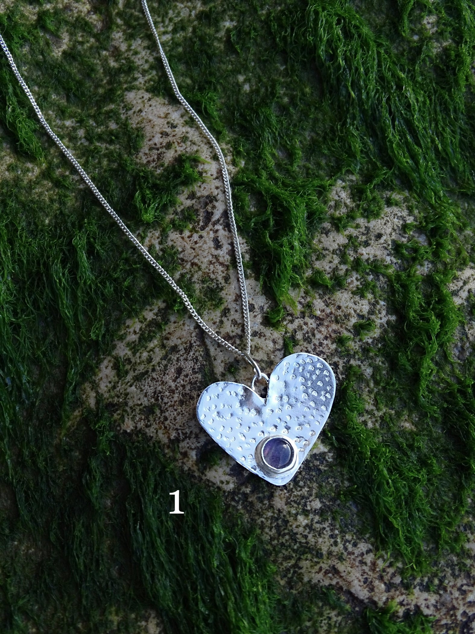 1 • hammered heart pendant with purple labradorite. paired with an 18” chain.