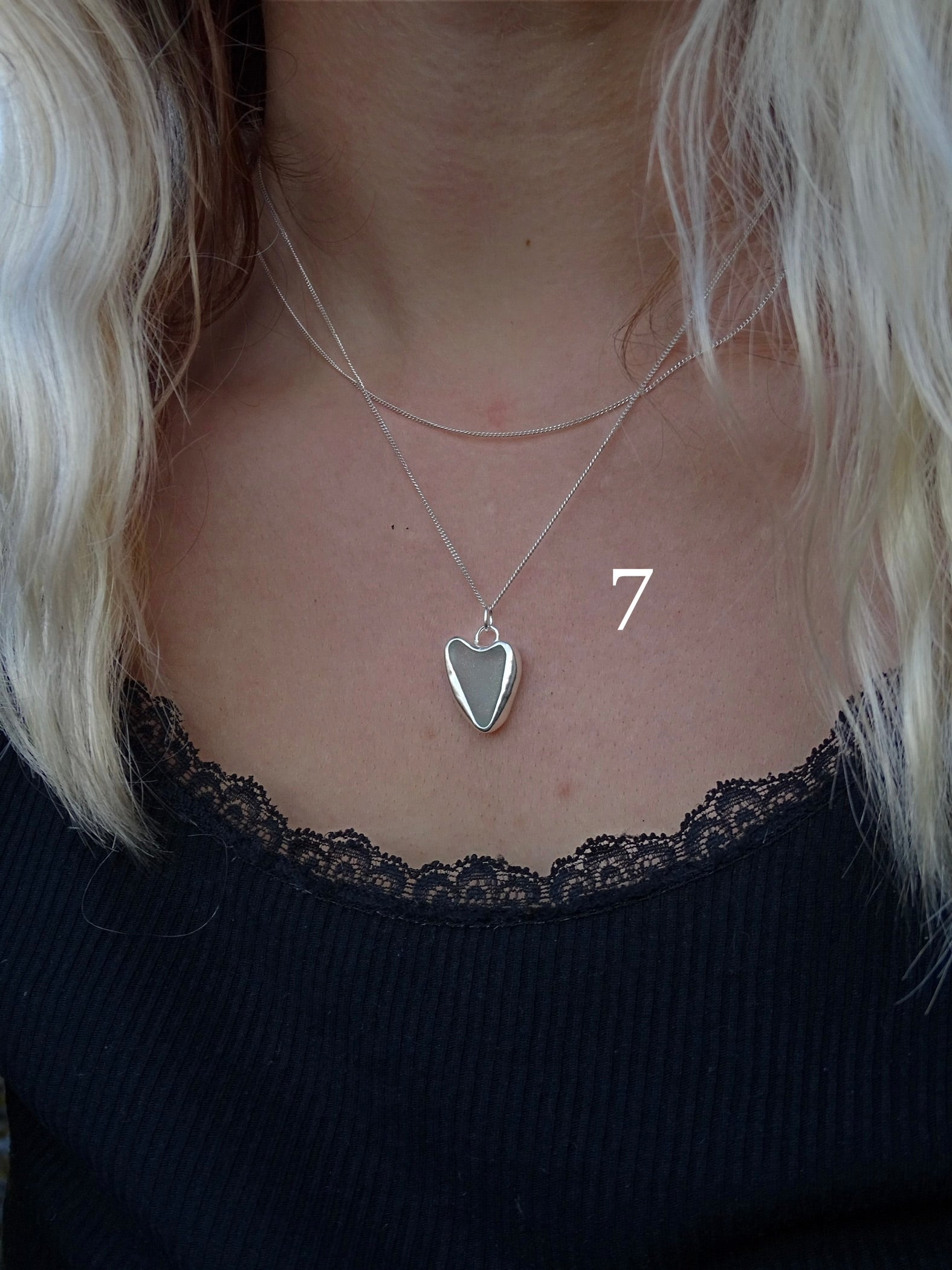 7 • backless light blue/green seaglass heart. paired with a 16” chain.